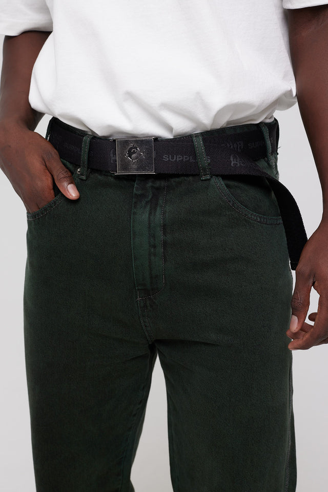 The WORSHIP Surplus Belt in black is a statement piece for those who embrace a gritty, underground vibe. Crafted with tough materials and a no-nonsense design, it adds a raw edge to your wardrobe. Perfect for pairing with worn-in denim or layered streetwear, this belt delivers both durability and attitude, making it an essential accessory for a bold, grunge-inspired look.